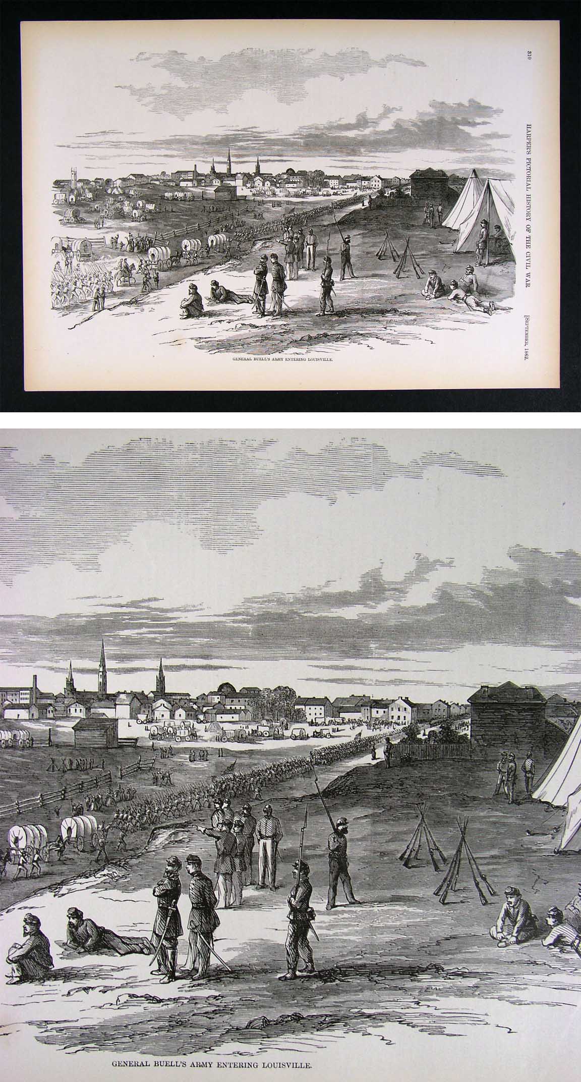 Description: It is an authentic antique Woodcut Print approximately 145 years old. It is from the first edition of Harper's Pictorial History of the Civil War, which was published by McDonnell Bros., Chicago, Ill., part one was published in 1866 and part II in 1868. With the first part completed in 1866, it was one of the first works to put into perspective the account of the Great Rebellion, complete with woodcut illustrations, most of which were drawn on the spot by such artists as Winslow Homer, Granville Perkins, Livingston Hopkins and others for Harper's Weekly which chronicled the Civil War on a weekly basis. A copy of the title page is included for authenticity. The print is not mounted, matted nor framed being sold as a single sheet as seen in the first pic. There is text on the reverse. Overall, a very nicely preserved print that would frame up well!