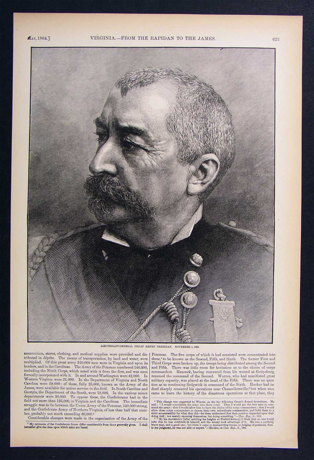 Description: It is an authentic antique Woodcut Print approximately 145 years old. It is from the first edition of Harper's Pictorial History of the Civil War, which was published by McDonnell Bros., Chicago, Ill., part one was published in 1866 and part II in 1868. With the first part completed in 1866, it was one of the first works to put into perspective the account of the Great Rebellion, complete with woodcut illustrations, most of which were drawn on the spot by such artists as Winslow Homer, Granville Perkins, Livingston Hopkins and others for Harper's Weekly which chronicled the Civil War on a weekly basis. A copy of the title page is included for authenticity. The print is not mounted, matted nor framed being sold as a single sheet as seen in the first pic. There is text on the reverse. Overall, a very nice portrait with intricate line work that would frame up well!