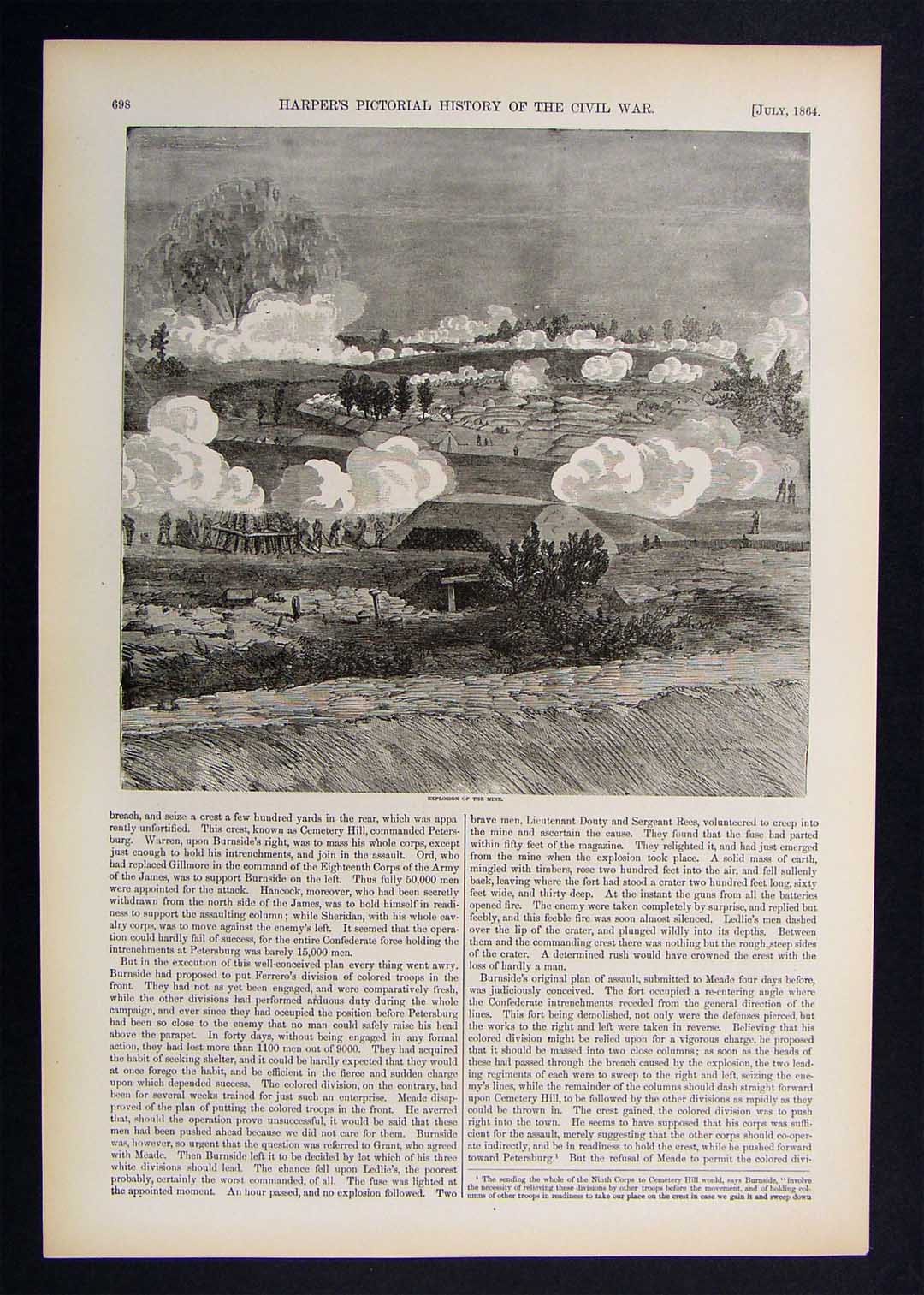 Description: It is an authentic antique Woodcut Print approximately 145 years old. It is from the first edition of Harper's Pictorial History of the Civil War, which was published by McDonnell Bros., Chicago, Ill., part one was published in 1866 and part II in 1868. With the first part completed in 1866, it was one of the first works to put into perspective the account of the Great Rebellion, complete with woodcut illustrations, most of which were drawn on the spot by such artists as Winslow Homer, Granville Perkins, Livingston Hopkins and others for Harper's Weekly which chronicled the Civil War on a weekly basis. A copy of the title page is included for authenticity. The print is not mounted, matted nor framed being sold as a single sheet as seen in the first pic. There is text on the reverse. Overall, a very nicely preserved print that would frame up well!