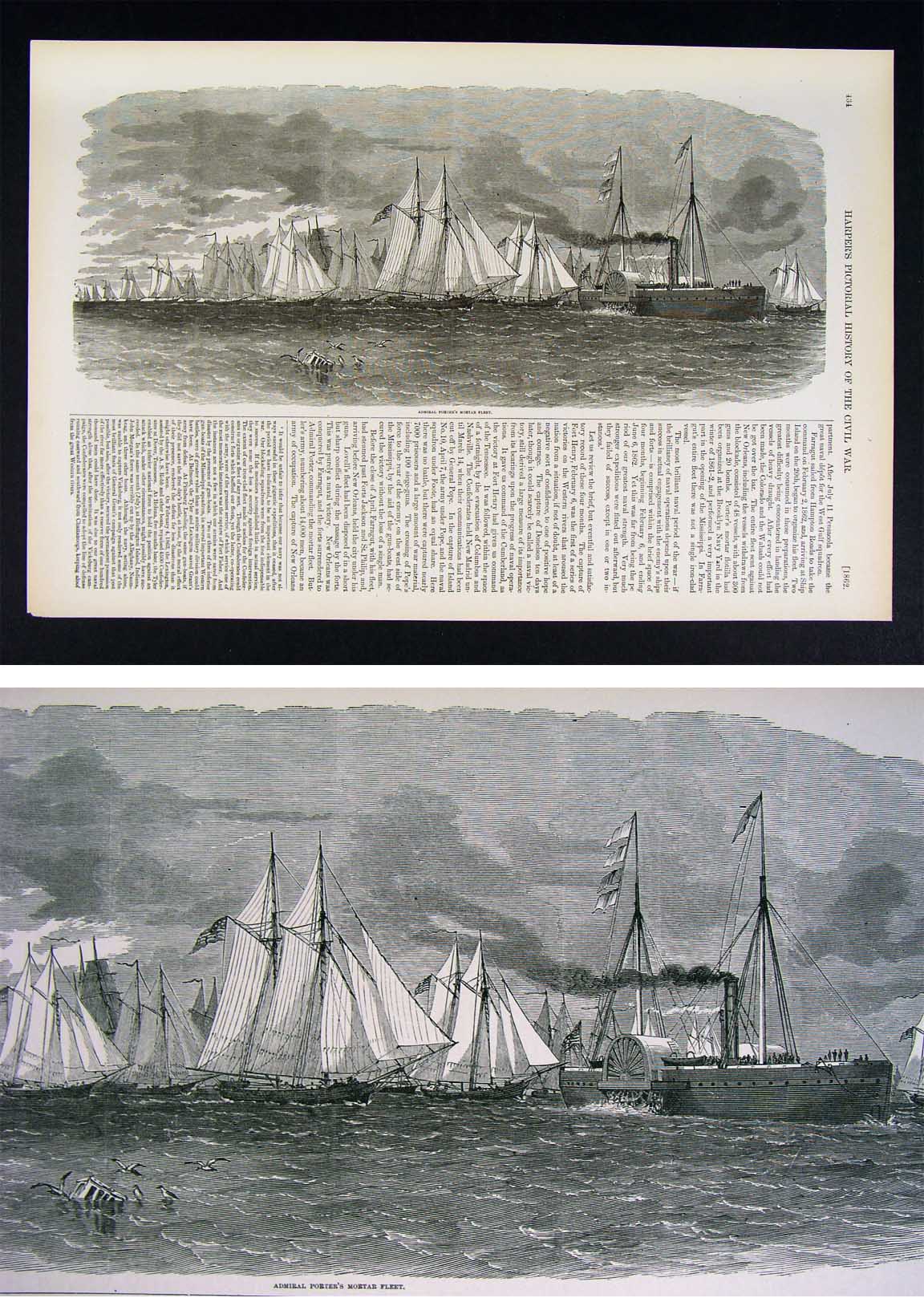 Harper's Civil War Print Porter's Mortar Fleet US Navy