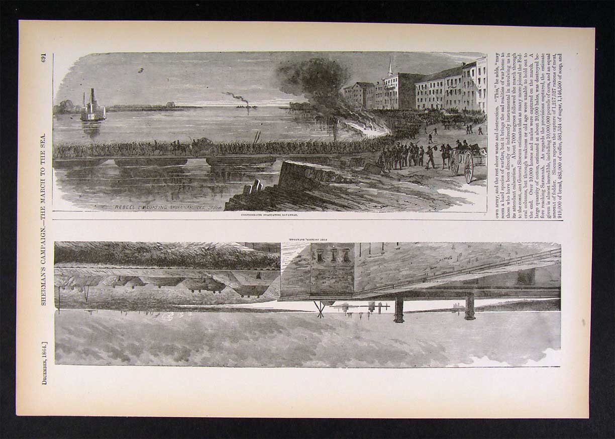 Description: It is an authentic antique Woodcut Print approximately 145 years old. It is from the first edition of Harper's Pictorial History of the Civil War, which was published by McDonnell Bros., Chicago, Ill., part one was published in 1866 and part II in 1868. With the first part completed in 1866, it was one of the first works to put into perspective the account of the Great Rebellion, complete with woodcut illustrations, most of which were drawn on the spot by such artists as Winslow Homer, Granville Perkins, Livingston Hopkins and others for Harper's Weekly which chronicled the Civil War on a weekly basis. A copy of the title page is included for authenticity. The print is not mounted, matted nor framed being sold as a single sheet as seen in the first pic. There is text on the reverse. The top shows the Evacuation of Savannah and below and upside down is a view of Fort Jackson, one could easily cut the page and frame both images.