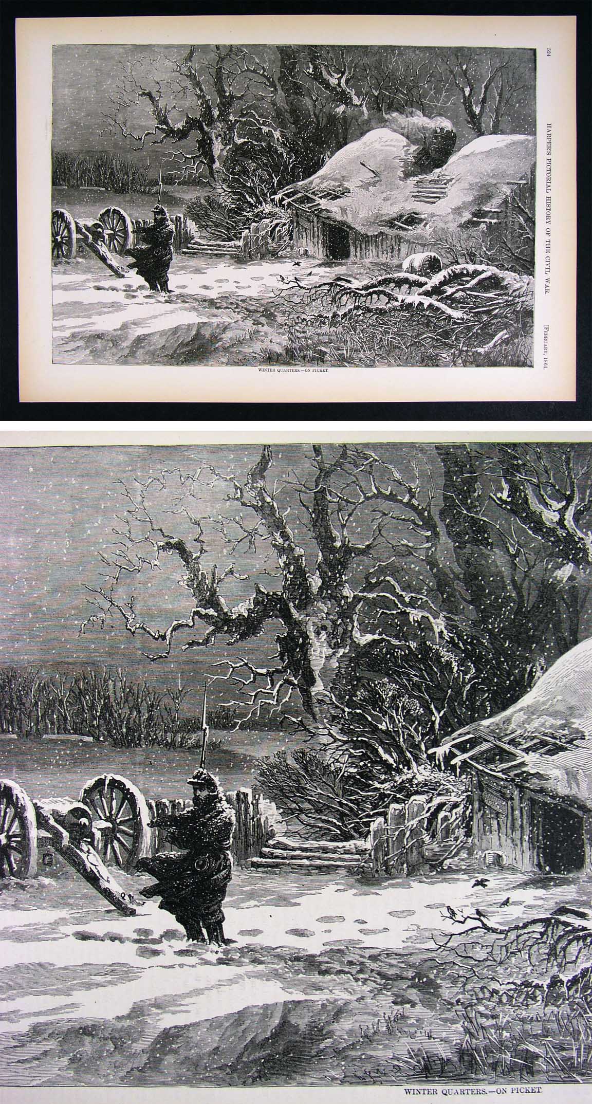 Description: It is an authentic antique Woodcut Print approximately 145 years old. It is from the first edition of Harper's Pictorial History of the Civil War, which was published by McDonnell Bros., Chicago, Ill., part one was published in 1866 and part II in 1868. With the first part completed in 1866, it was one of the first works to put into perspective the account of the Great Rebellion, complete with woodcut illustrations, most of which were drawn on the spot by such artists as Winslow Homer, Granville Perkins, Livingston Hopkins and others for Harper's Weekly which chronicled the Civil War on a weekly basis. A copy of the title page is included for authenticity. The print is not mounted, matted nor framed being sold as a single sheet as seen in the first pic. There is text on the reverse. Overall, a very nicely preserved print that would frame up well!