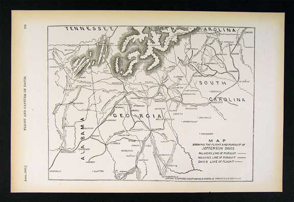The map shows the routes of Jefferson Davis's Flight from Richmond with Palmer's and Wilson's Line of Pursuit.