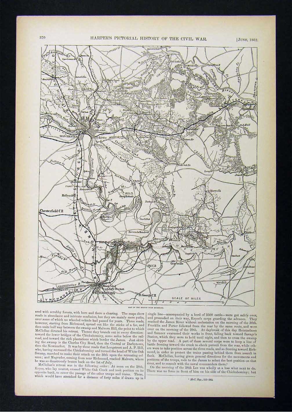 Description: It is an authentic antique woodcut map approximately 145 years old. It is from the first edition of Harper's Pictorial History of the Civil War, which was published by McDonnell Bros., Chicago, Ill., part one was published in 1866 and part II in 1868. With the first part completed in 1866, it was one of the first works to put into perspective the account of the Great Rebellion, complete with woodcut illustrations, most of which were drawn on the spot by such artists as Winslow Homer, Granville Perkins, Livingston Hopkins and others for Harper's Weekly which chronicled the Civil War on a weekly basis. A copy of the title page is included for authenticity. The map is not mounted, matted nor framed being sold as a single sheet as seen in the first pic. There is text on the reverse. Overall, a very nicely preserved print that would frame up well!