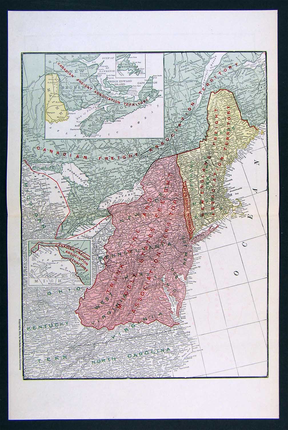 Description: It is an authentic Antique map with a copyright date of 1913 printed on the map as stated in the bottom margin: "Copyright: 1913, by LeSalle Extension University, Chicago." It is from an Atlas of Railway Traffic Maps published in Chicago by the LaSalle Extension University, 1913, a copy of the title page is included for autenticitiy. The map is not mounted nor matted, being sold as a single sheet as seen in the first pic. A very nice map in great shape.