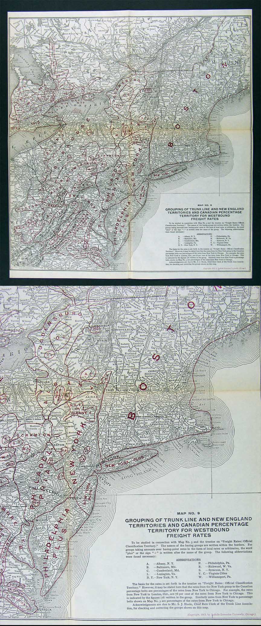 Description: It is an authentic Antique map with a copyright date of 1913 printed on the map as stated in the bottom margin: "Copyright: 1913, by LeSalle Extension University, Chicago." It is from an Atlas of Railway Traffic Maps published in Chicago by the LaSalle Extension University, 1913, a copy of the title page is included for autenticitiy. The map is not mounted nor matted, being sold as a single sheet as seen in the first pic. A very nice map in great shape.