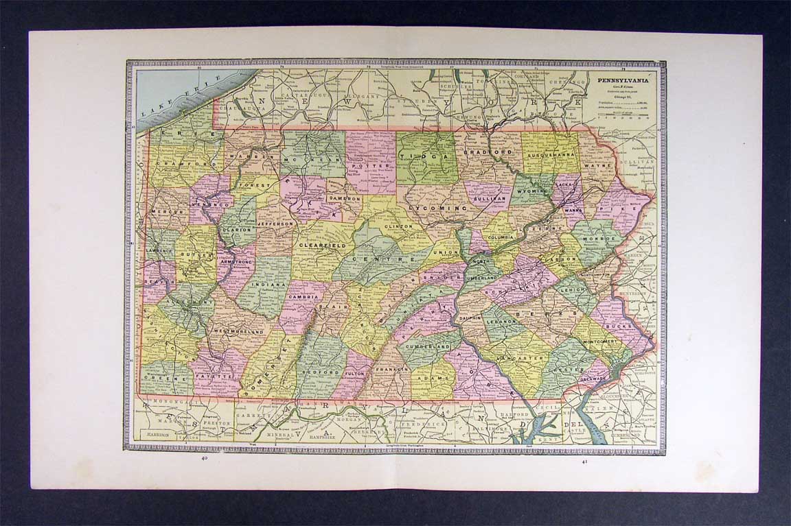 1883 Cram Map Pennsylvania Philadelphia Harrisburg Erie
