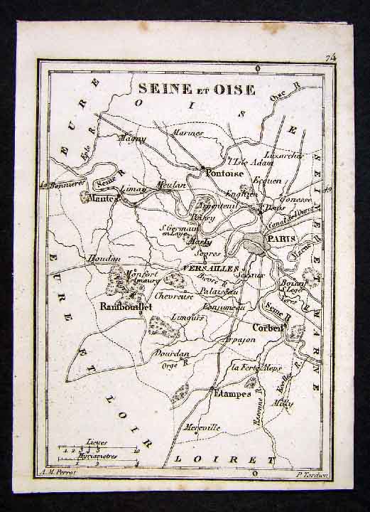 1833 Perrot Map Seine et Oise Paris Versailles France