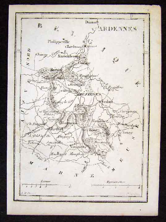 1833 Perrot Tardieu Map Ardennes Mezieres Sedan France