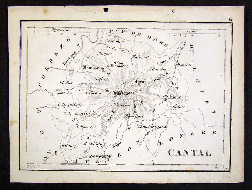 1833 Perrot Tardieu Map Cantal Aurillac Mauriac France