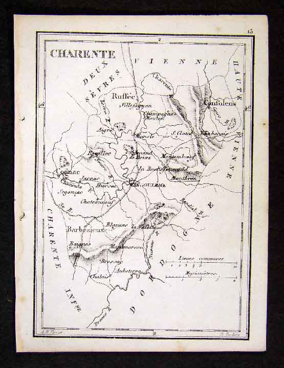 Description: It is an original antique copper engraved map over 175 years old. It is by Aristide Michel Perrot and engraved by Pierre Antoine Tardieu for Perrot's Atlas Portatif de France (Paris, 1833). A.M. Perrot's name appears in the bottom left and P.Tardieu appears in the bottom right. The map is not mounted nor matted, being sold as a single sheet as seen in the first pic. A nice miniature map with much detail.