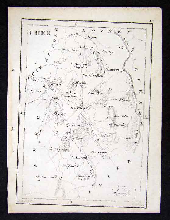 1833 Perrot Tardieu Map - Cher - Bourges Loire France