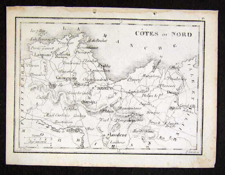 1833 Perrot Tardieu Map Cotes du Nord St. Brieuc France