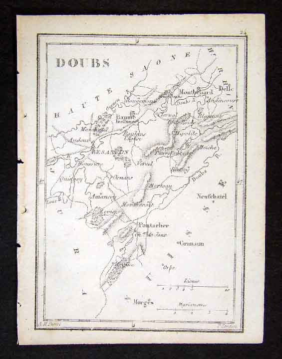 Description: It is an original antique copper engraved map over 175 years old. It is by Aristide Michel Perrot and engraved by Pierre Antoine Tardieu for Perrot's Atlas Portatif de France (Paris, 1833). A.M. Perrot's name appears in the bottom left and P.Tardieu appears in the bottom right. The map is not mounted nor matted, being sold as a single sheet as seen in the first pic. A nice miniature map with much detail.