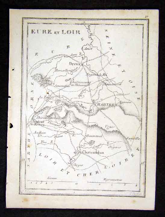 1833 Perrot Tardieu Map Eure Loir Chartres Dreux France