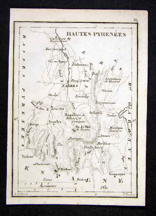 1833 Perrot Tardieu Map - Hautes Pyrenees Tarbes France