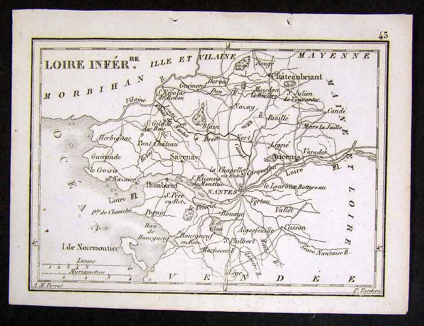 1833 Perrot Tardieu Map Loire Inferior - Nantes France