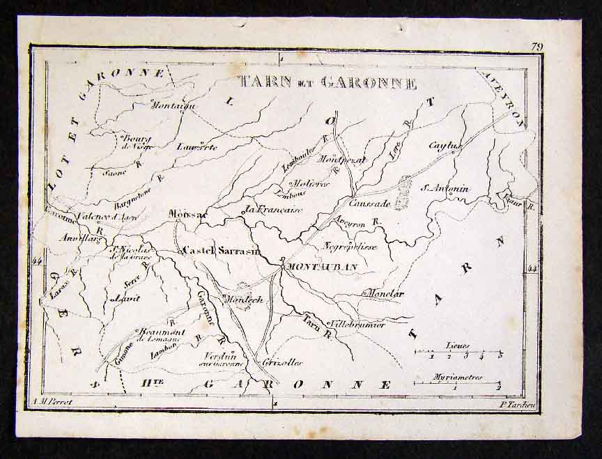1833 Perrot Tardieu Map Tarn Garonne Montauban France