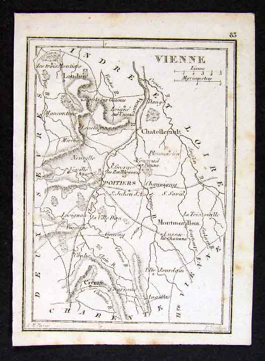Description: It is an original antique copper engraved map over 175 years old. It is by Aristide Michel Perrot and engraved by Pierre Antoine Tardieu for Perrot's Atlas Portatif de France (Paris, 1833). A.M. Perrot's name appears in the bottom left and P.Tardieu appears in the bottom right. The map is not mounted nor matted, being sold as a single sheet as seen in the first pic. A nice miniature map with much detail.