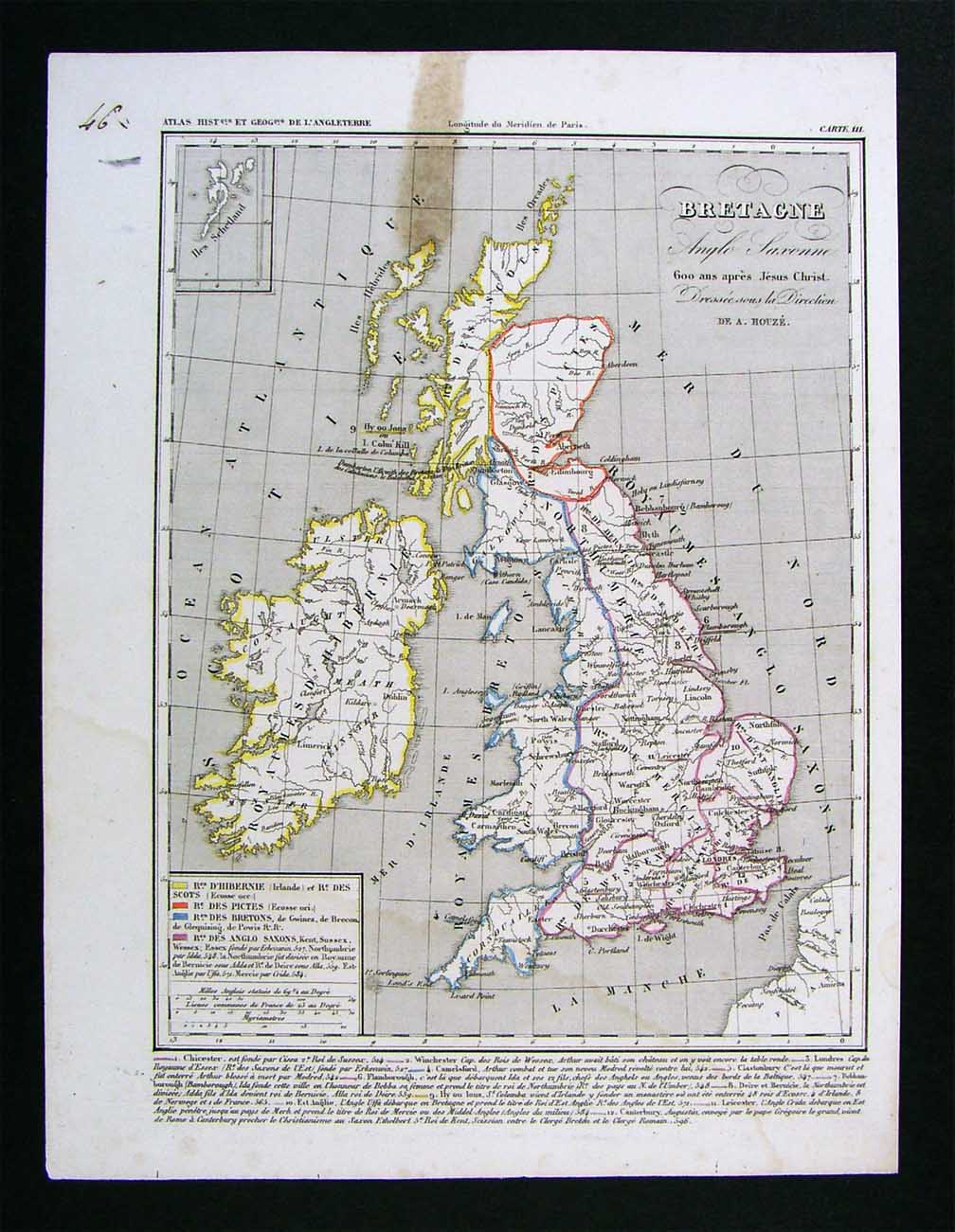 Description: It is an authentic engraved antique map approximately 165 years old with original handcolor outlining. It is from Houze's Atlas Universel Historique et Geographique (Paris: Dumenil, 1841). A copy of the Atlas title page with date is included for authenticity. The name of A. Houze appears in the title block, under whose directions the maps were designed and engraved. It is being sold as a single sheet, not mounted, matted nor framed, basically as seen in the pic, photographed against a dark background so you can see all the edges and actual condition. The map was actually printed in 1841, but depicts an earlier historical period, prepared by Houze, a member of the Societe de Geographie in Paris. A great map for anyone interested in this historical period. Overall a very nice example printed on strong paper with original handcolor in great shape.