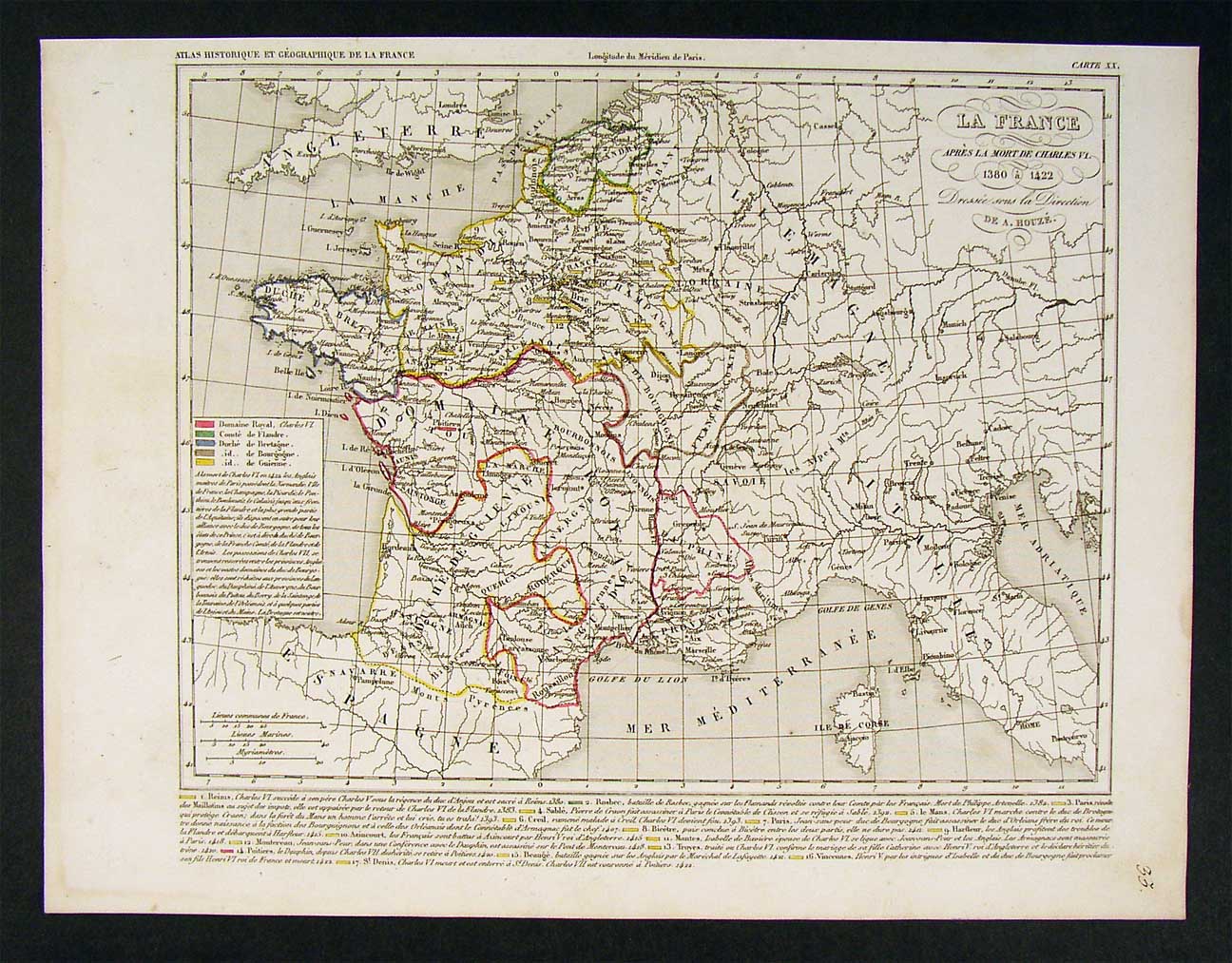 Description: It is an authentic engraved antique map approximately 165 years old with original handcolor outlining. It is from Houze's Atlas Universel Historique et Geographique (Paris: Dumenil, 1841). A copy of the Atlas title page with date is included for authenticity. The name of A. Houze appears in the title block, under whose directions the maps were designed and engraved. It is being sold as a single sheet, not mounted, matted nor framed, basically as seen in the pic, photographed against a dark background so you can see all the edges and actual condition. The map was actually printed in 1841, but depicts an earlier historical period, prepared by Houze, a member of the Societe de Geographie in Paris. A great map for anyone interested in this historical period. Overall a very nice example printed on strong paper with original handcolor in great shape.