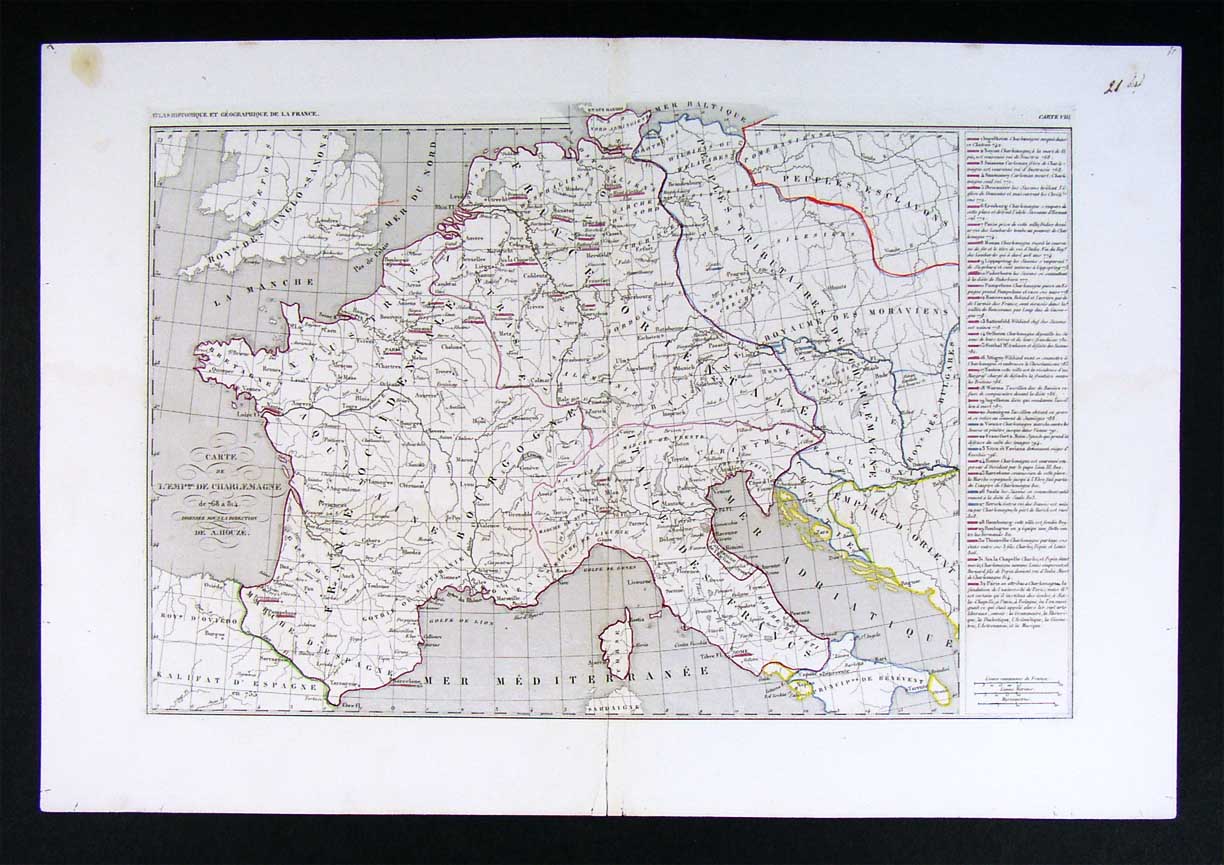 Description: It is an authentic engraved antique map approximately 165 years old with original handcolor outlining and a centerfold as issued. It is from Houze's Atlas Universel Historique et Geographique (Paris: Dumenil, 1841). A copy of the Atlas title page with date is included for authenticity. The name of A. Houze appears in the title block, under whose directions the maps were designed and engraved. It is being sold as a single sheet, not mounted, matted nor framed, basically as seen in the pic, photographed against a dark background so you can see all the edges and actual condition. The map was actually printed in 1841, but depicts an earlier historical period, prepared by Houze, a member of the Societe de Geographie in Paris. A great map for anyone interested in this historical period. Overall a very nice example printed on strong paper with original handcolor in great shape.