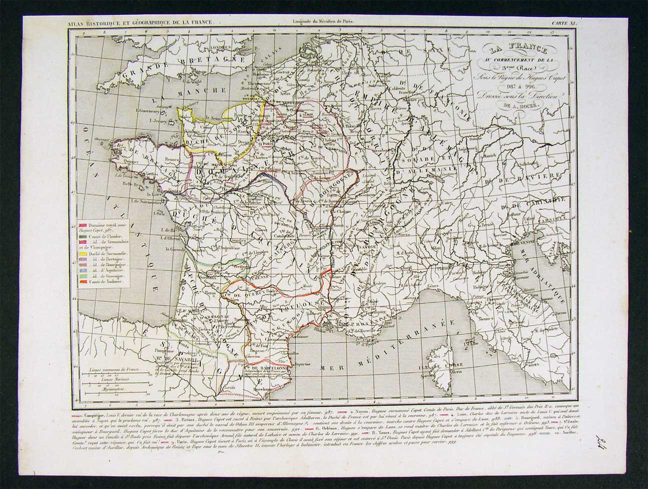 Description: It is an authentic engraved antique map approximately 165 years old with original handcolor outlining. It is from Houze's Atlas Universel Historique et Geographique (Paris: Dumenil, 1841). A copy of the Atlas title page with date is included for authenticity. The name of A. Houze appears in the title block, under whose directions the maps were designed and engraved. It is being sold as a single sheet, not mounted, matted nor framed, basically as seen in the pic, photographed against a dark background so you can see all the edges and actual condition. The map was actually printed in 1841, but depicts an earlier historical period, prepared by Houze, a member of the Societe de Geographie in Paris. A great map for anyone interested in this historical period. Overall a very nice example printed on strong paper with original handcolor in great shape.