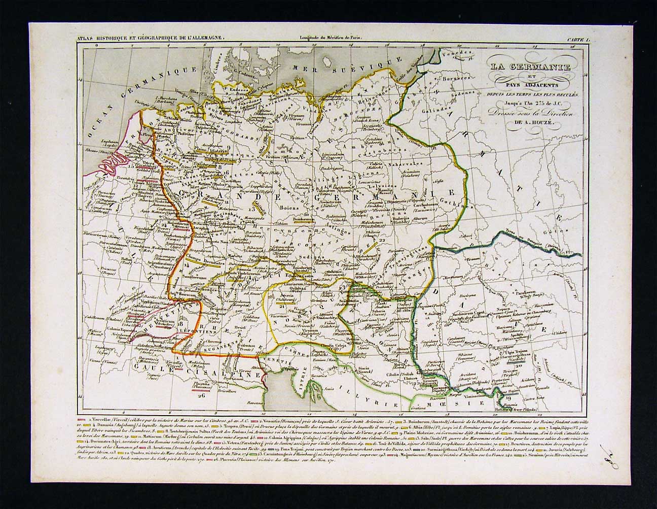 1841 Houze Map Germania Germany Austria C Europe 275 AD