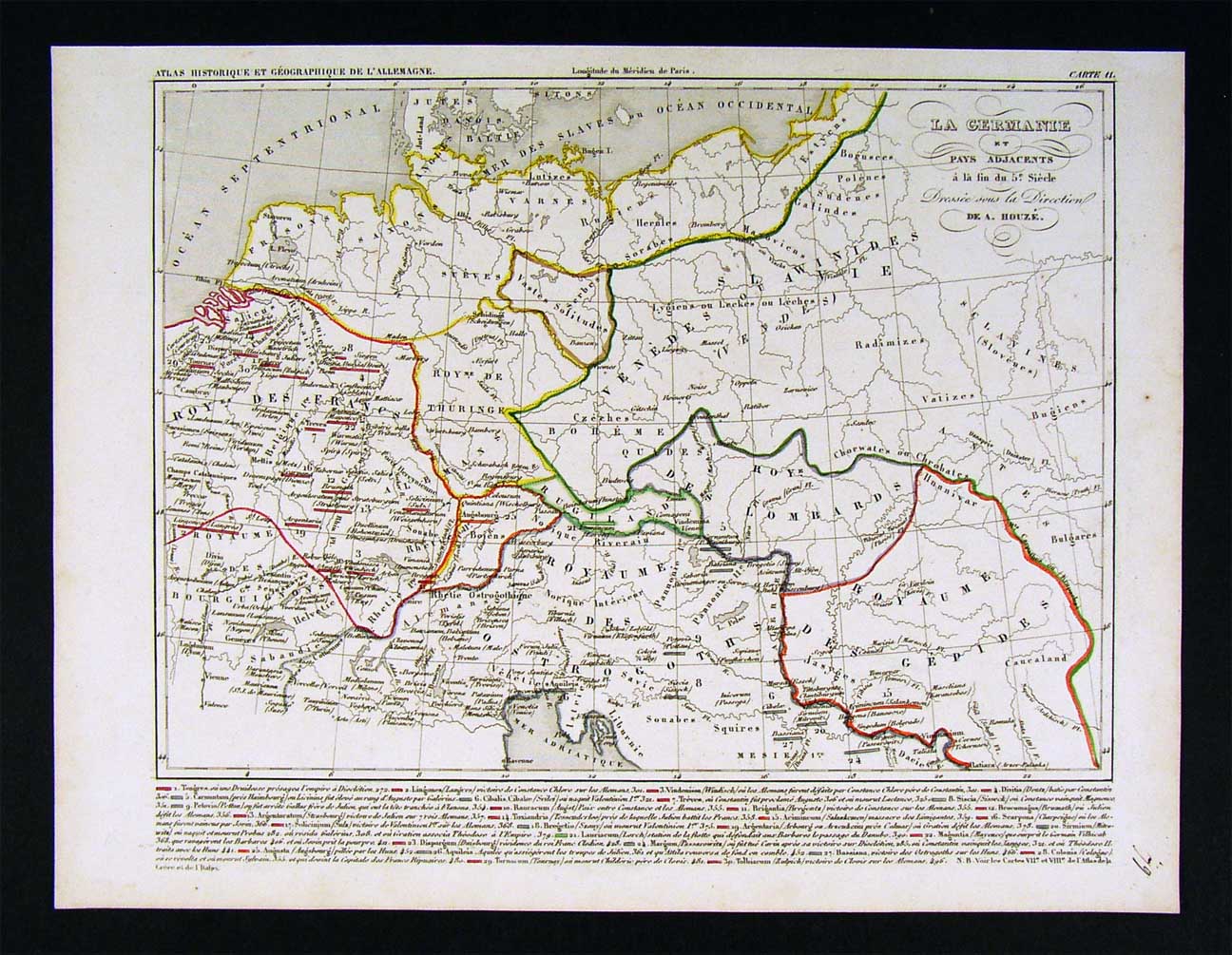 Description: It is an authentic engraved antique map approximately 165 years old with original handcolor outlining. It is from Houze's Atlas Universel Historique et Geographique (Paris: Dumenil, 1841). A copy of the Atlas title page with date is included for authenticity. The name of A. Houze appears in the title block, under whose directions the maps were designed and engraved. It is being sold as a single sheet, not mounted, matted nor framed, basically as seen in the pic, photographed against a dark background so you can see all the edges and actual condition. It is an antique historical map.