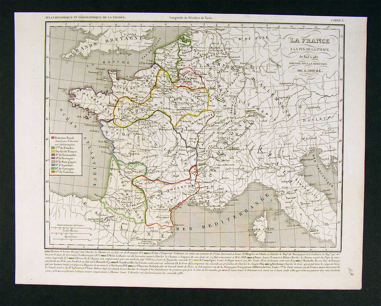 Description: It is an authentic engraved antique map approximately 165 years old with original handcolor outlining. It is from Houze's Atlas Universel Historique et Geographique (Paris: Dumenil, 1841). A copy of the Atlas title page with date is included for authenticity. The name of A. Houze appears in the title block, under whose directions the maps were designed and engraved. It is being sold as a single sheet, not mounted, matted nor framed, basically as seen in the pic, photographed against a dark background so you can see all the edges and actual condition. The map was actually printed in 1841, but depicts an earlier historical period, prepared by Houze, a member of the Societe de Geographie in Paris. A great map for anyone interested in this historical period. Overall a very nice example printed on strong paper with original handcolor in great shape.