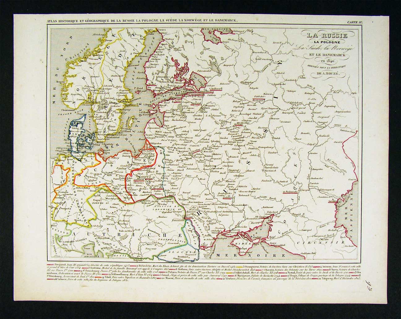 1841 Houze Map - Russia Poland Sweden Denmark - Europe
