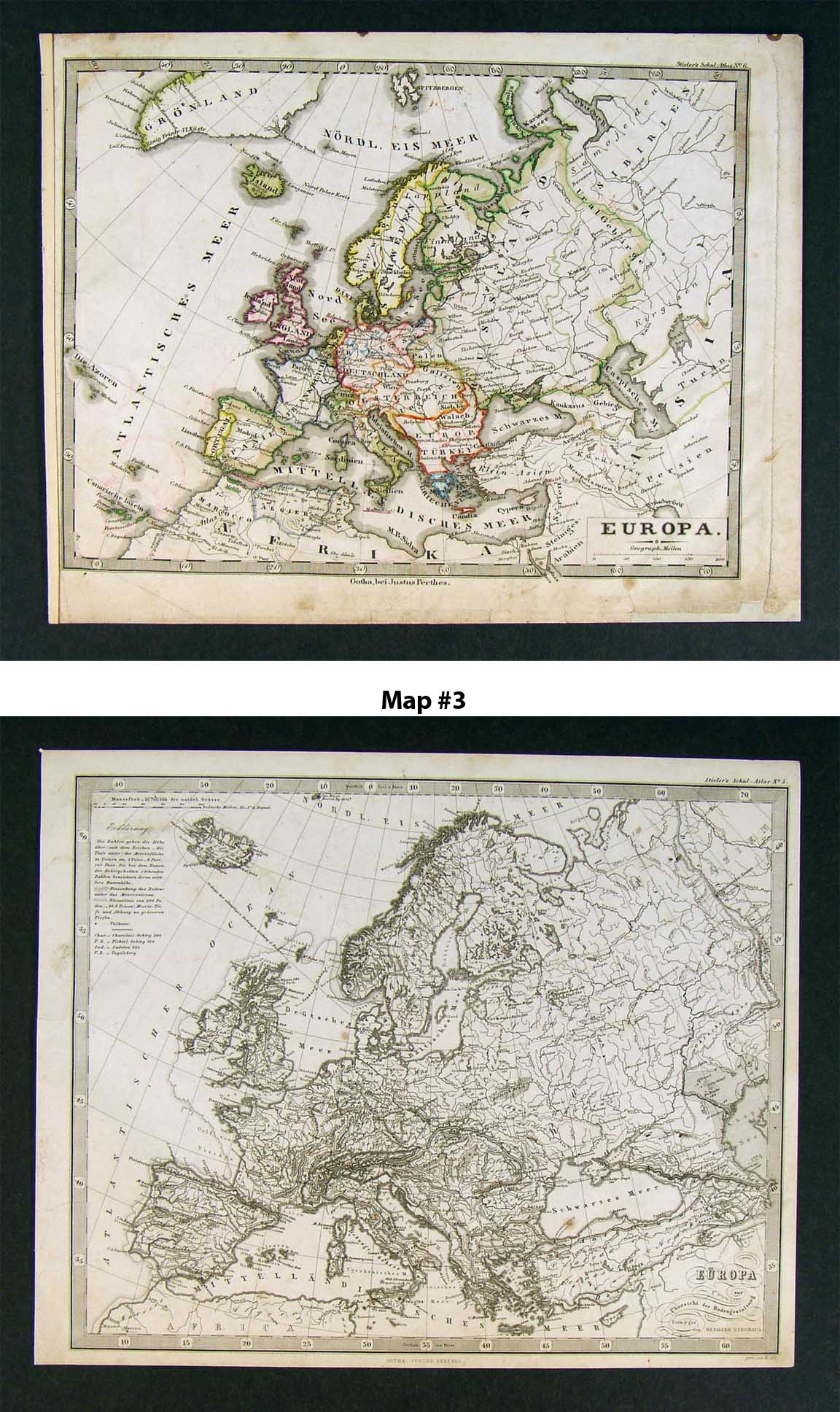 Condition: Both maps are in Fair to Good condition. They are basically as seen in the pics, blank on the reverse with original handcoloring as issued. The pic basically shows the condition very well. As can be seen there is smudging, some stains and writing. There are some old repairs reinforcing the edges on the reverse and some pencil handwriting on the reverse of the political map. Pics are of the actual maps. The political map does have a nice antique patina to it without any really distracting defects that would be very good for framing. The Physical map is uncolored. The pics are of the actual map and show the condition well.