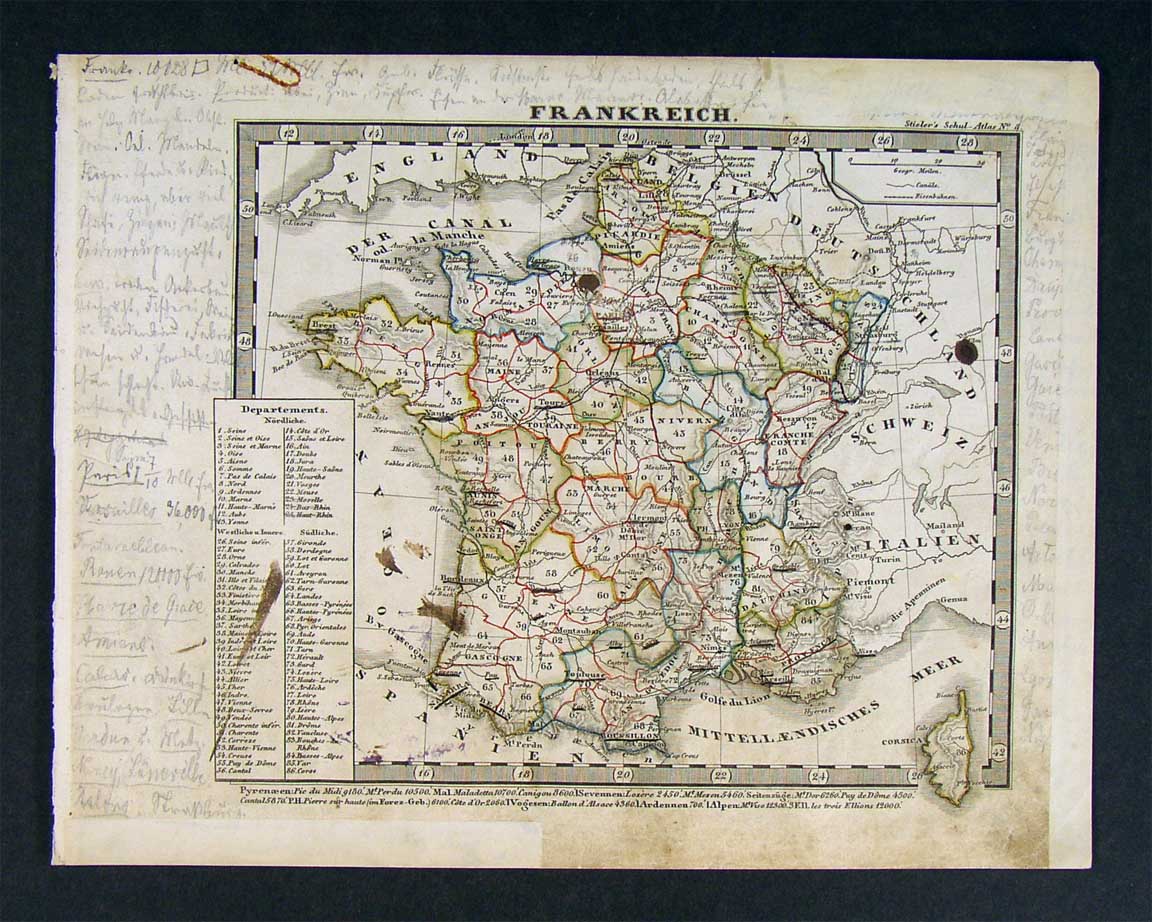 Description: It is an original copper engraved antique map over 150 years old with original hand coloring as issued and the plate marks embossed in the margin. It is from Adolf Stieler's Schul-Atlas Uber alle Theile der Erde published in Gotha by Justus Perthes, 1853. A copy of the title page is included for authenticity. The name of the atlas is in the upper right corner and the publisher's name appears in the bottom center margin. The map is not mounted nor matted, being sold as a single sheet as seen in the first pic. These are the smaller maps from the school atlas, we also have some of the larger Stieler maps from the Hand Atlas in other listings.