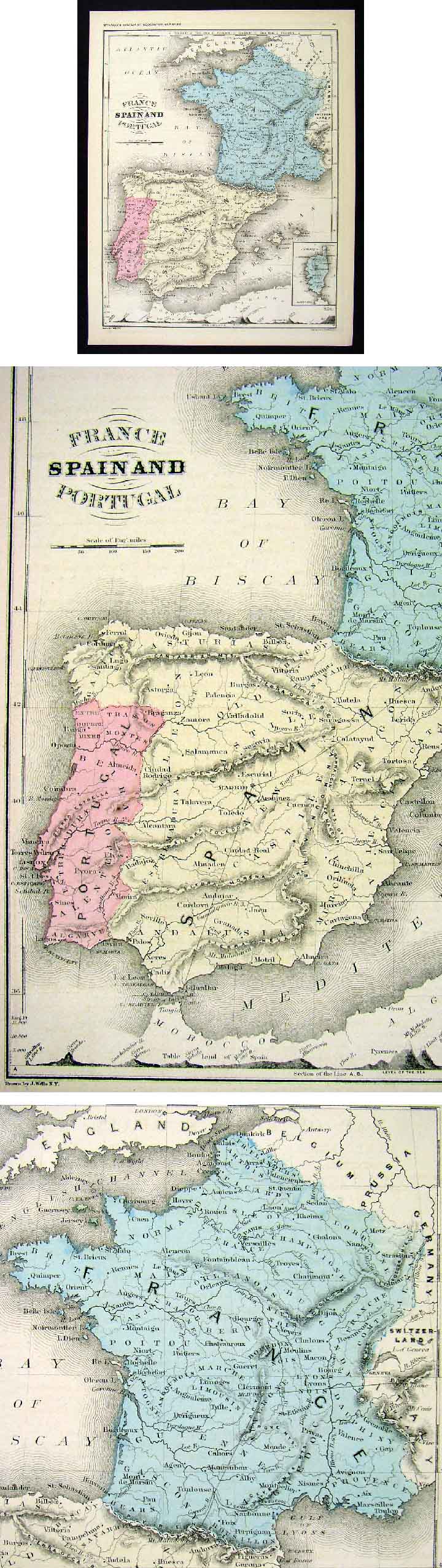 Description: It is an authentic Antique map over 150 years old with original handcoloring as issued. It is from Francis McNally's System of Geography: National Geographical Series, No. 3 (New York: S. Barnes & Co., 1857). It is designed by J. Wells, NY as stated in the bottom margin and the title of the atlas is along the top. A copy of the title page is included for authenticity. The map is not mounted nor matted, being sold as a single sheet as seen in the first pic. A very nice map in great shape.
