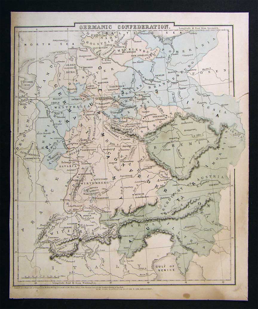 Description:  It is an authentic Antique map approximately 150 years old with original handcoloring as issued. It is from an 1859 edition of Cornell's Companion Atlas to Cornell's High School Geography (New York: Appleton, 1859), which is the more elaborate and accurate companion to the simpler school geographies produced by S.S. CornellThe map has an earlier copyright date of 1855 in small print in the bottom margin. The name of the atlas with Cornell's name appears in the title block and the publisher's details are in the bottom center. The map is not mounted nor matted, being sold as a single sheet as seen in the pics.