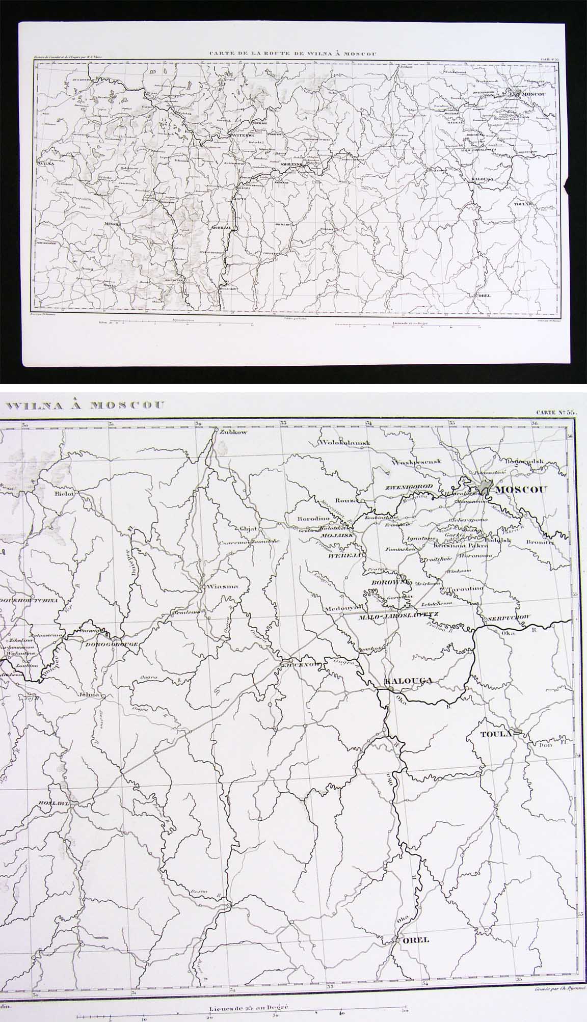 Description: It is an original engraved antique map in excellent condition with the plate mark indentions clearly shown in the margins. It is designed by A.H. Dufour and was published in M.A. Thiers' Atlas de L'Histoire du Consulat et de L'Empire (Paris: Paulin, 1859). The map itself is well documented on the map: the title of the atlas appears in the upper left margin, the title of the map in the top center, the plate number in the upper right, the name of the designer Th. Duvotenay in the bottom left, the publisher Paulin's name in bottom center and the engraver Dyonnet in the bottom right. A copy of the title page with the date is also included for authenticity. This series of maps were designed to illustrate the terrain of the battles of the Napoleonic campaigns. They are very detailed in terms of the topography and are generally focused on a particular region, battlefield or campaign, although military positions are generally not shown. It is not matted nor mounted, being sold as a single individual sheet as seen in the main pic. It is very early in date for this degree of detail, published without a centerfold: usually they were folded in half for some editions, so it is exceptionally nice for framing.