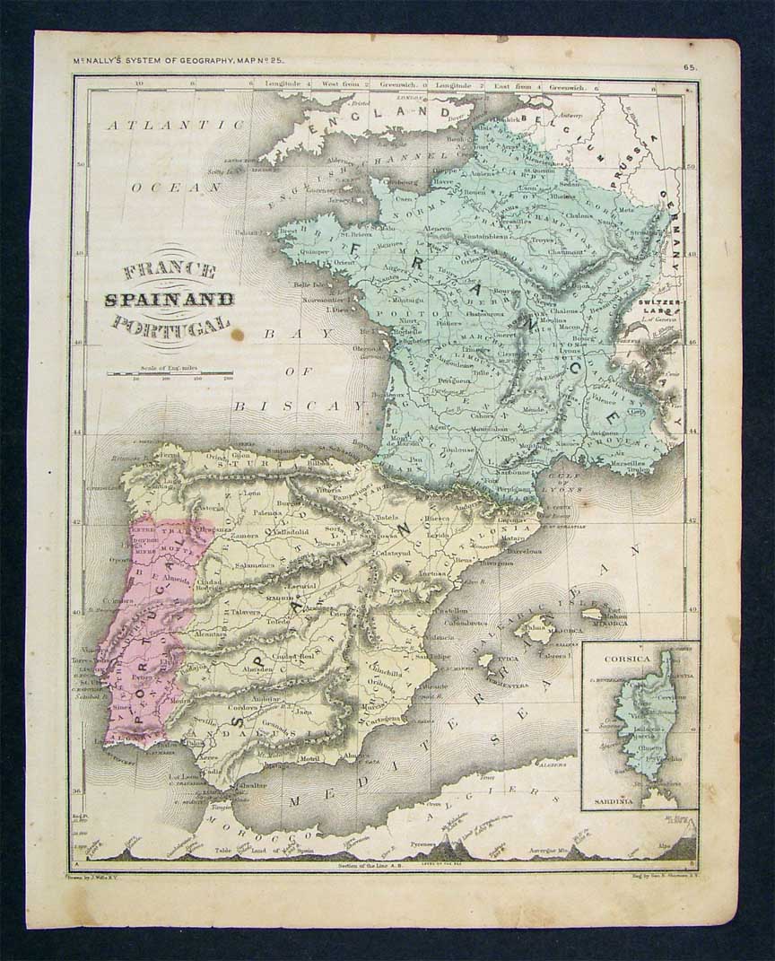 1859 McNally Map Spain Portugal France Corsica Paris