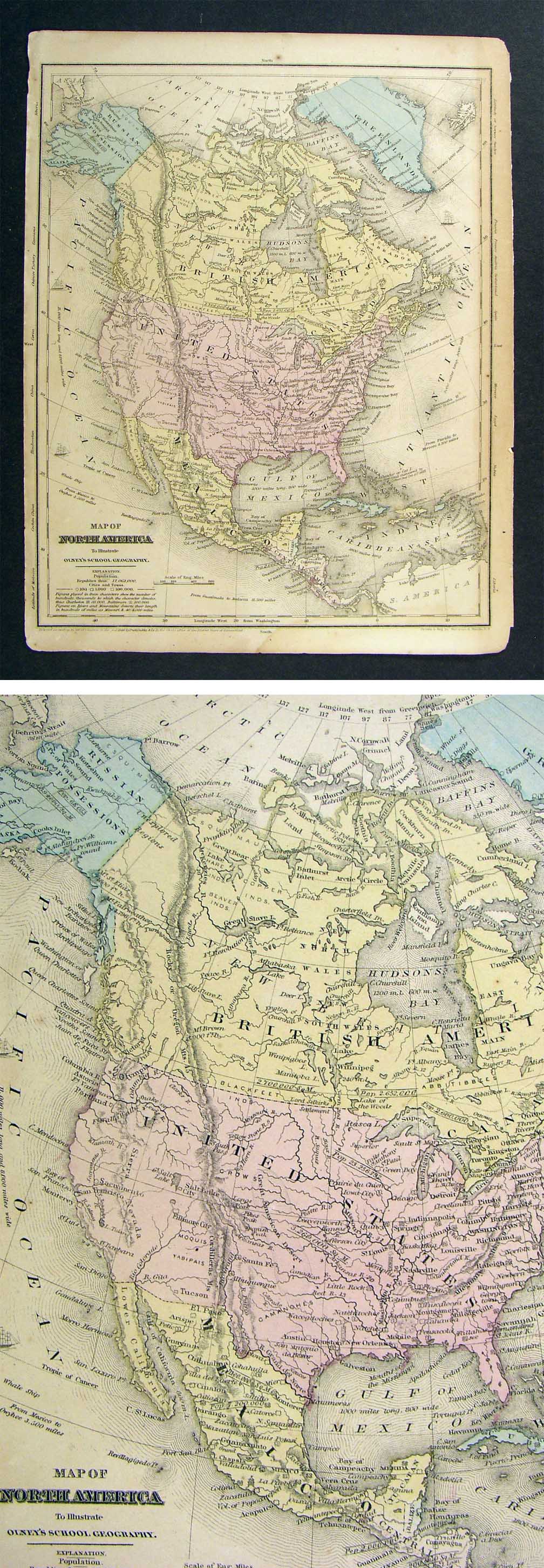 Description: It is an authentic engraved antique map from Olney's Atlas of Moderna and Ancient Geography (New York: Sheldon, 1866) and has an earlier copyright date of 1860 printed in the bottom margin. It is drawn and engraved by Sherman & Smith, NY, stated in the bottom right margin. The original title page of the atlas is included. It is an interesting map showing Indian tribes out West, Russia Alaska and other details. It is being sold as a single sheet, not matted nor framed as shown in the main pic.