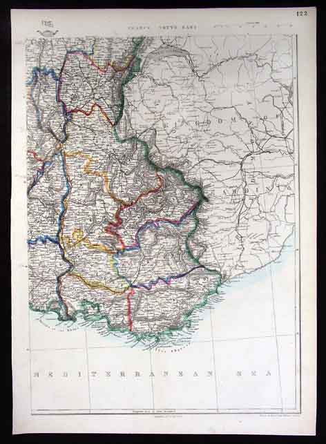Description: It is an original antique Weekly Dispatch map with handcoloring as issued. These maps were original published as a supplement to the Weekly Dispatch Sunday Newspaper. They were issued as single sheets of various parts of the world for collectors who could gradually combine them into an atlas. They were produced between 1857-1864. The map is designed by J.W. Lowry, F.R.G.S., as stated in the bottom left corner. The map is not mounted nor matted, being sold as a single sheet as seen in the first pic. Overall, A Beautiful Map that will frame up nicely.