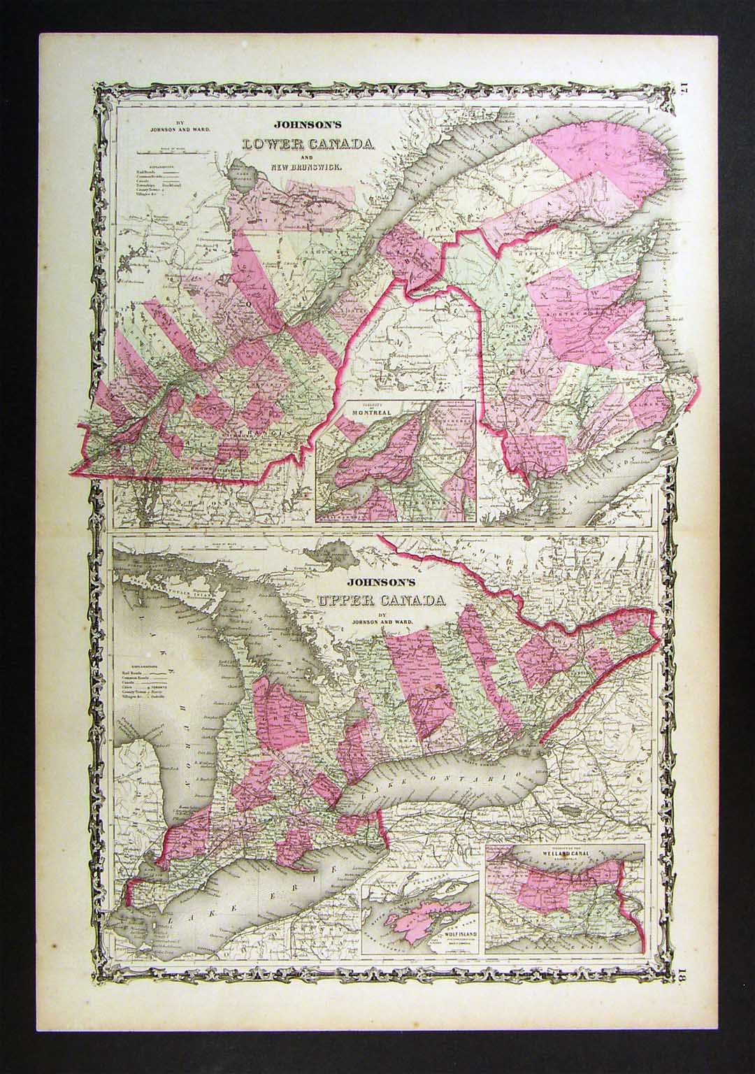 Description: It is an original engraved antique map with original handcoloring and the desirable decorative border. It is from the 1862 Edition of Johnson's Family Atlas. A copy of the title page is included for authenticity. It is not matted nor framed being sold as a single sheet as shown in the main pic.