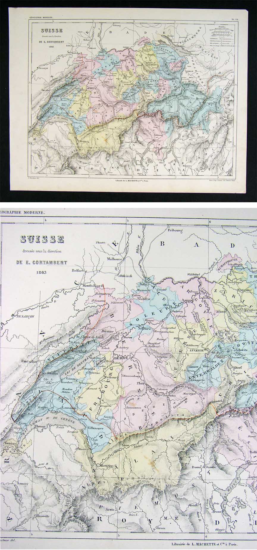 Description: It is an authentic Antique map approximately 145 years old with original handcoloring as issued. It is from Cortambert's Nouvel Atlas de Geographie Moderne (Paris: Hachette), c. 1865. The map has a date of 1863 printed on it. The map is not mounted nor matted, being sold as a single sheet as seen in the pics.