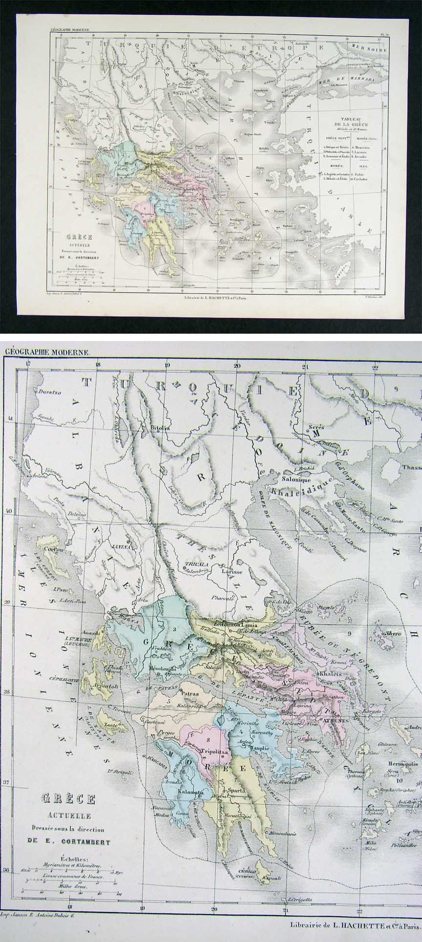 Description: It is an authentic Antique map approximately 145 years old with original handcoloring as issued. It is from Cortambert's Nouvel Atlas de Geographie Moderne (Paris: Hachette), c. 1865. The map is not mounted nor matted, being sold as a single sheet as seen in the pics.