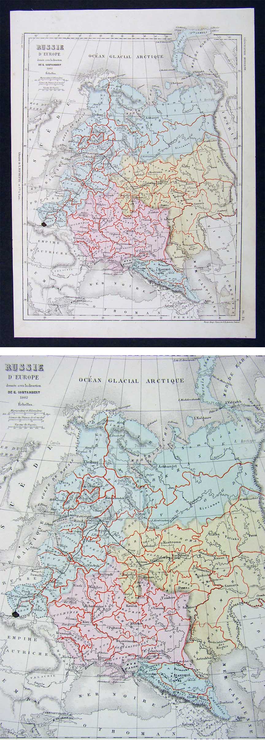 Description: It is an authentic Antique map approximately 145 years old with original handcoloring as issued. It is from Cortambert's Nouvel Atlas de Geographie Moderne (Paris: Hachette), c. 1865. The map is not mounted nor matted, being sold as a single sheet as seen in the pics.