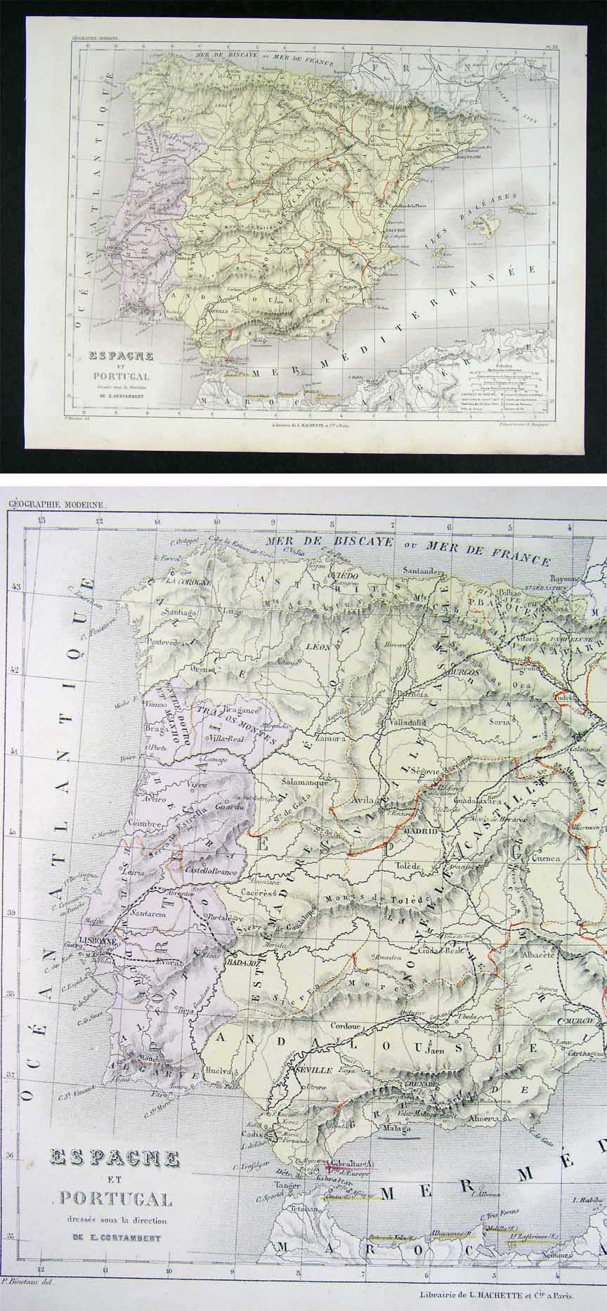 Description: It is an authentic Antique map approximately 145 years old with original handcoloring as issued. It is from Cortambert's Nouvel Atlas de Geographie Moderne (Paris: Hachette), c. 1865. The map is not mounted nor matted, being sold as a single sheet as seen in the pics.