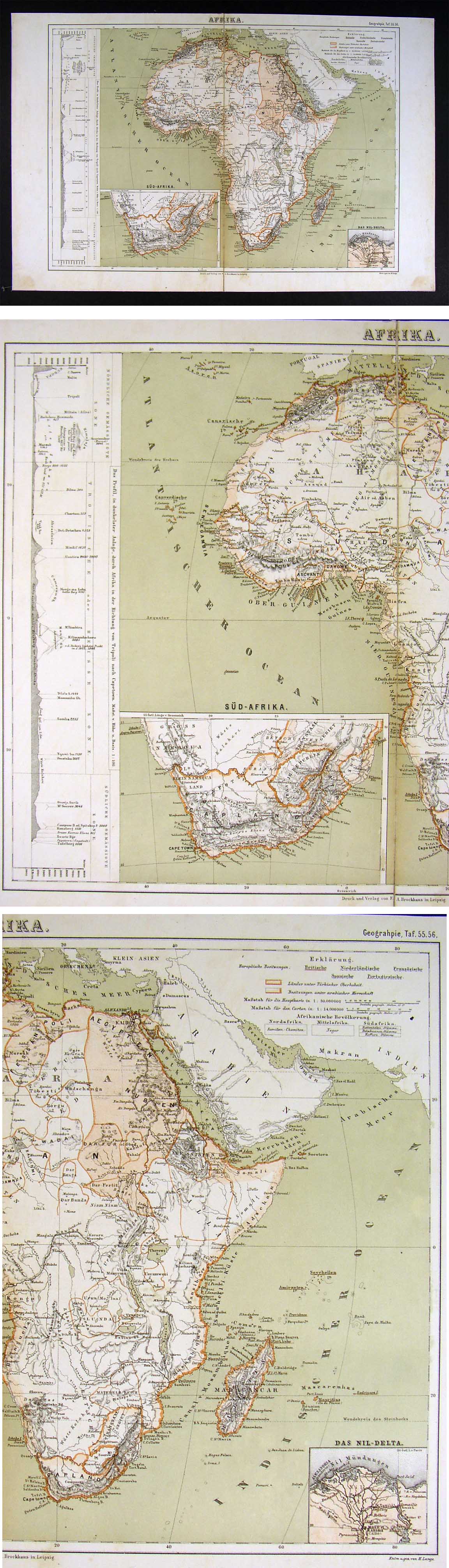 Description: It is an authentic antique steel engraved map over 135 years old. It is from the German Bilder Atlas, considered the most extensive lexicon of natural and scientific images of the 19th century, published in Leipzig by Brockhaus, 1874. It is labeled in German. A facsimile copy of the title page is included. It is being sold as a single sheet from the Atlas, not matted nor framed, as seen in the pic. The map is linen backed, so it is very strong and folds down the middle nicely.