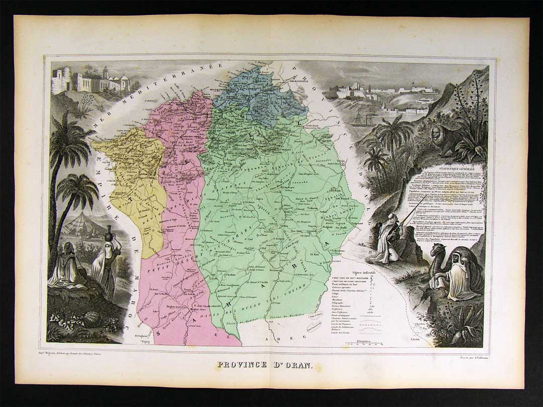 1877 Migeon Map - Oran Province Algeria N. Africa Alger