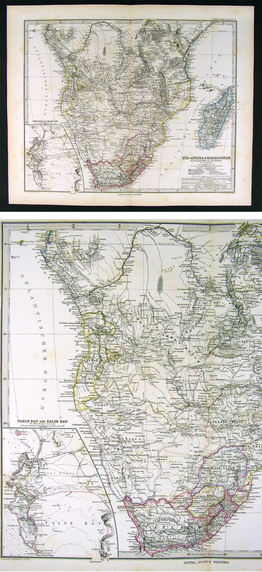 Description: It is an original antique map approximately 130 years old with original hand coloring and a centerfold as issued. It is from the 1880 edition of Stieler's Hand Atlas, published in Gotha by Justus Perthes. The publisher and date are shown on the map in the bottom margin and the name of the atlas is in the upper right corner. The map is not mounted nor matted, being sold as a single sheet as seen in the first pic. The Stieler maps are some of the most detailed of the 19th century in the German tradition of cartography.