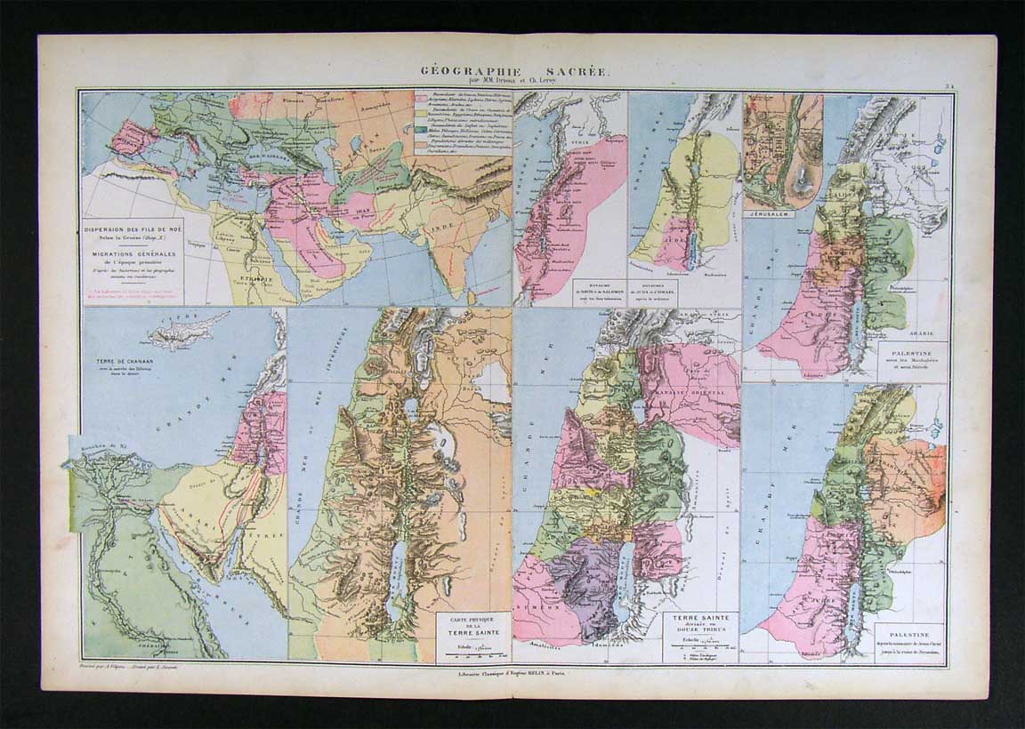 1882 Drioux Map - Holy Land Palestine Israel Jerusalem