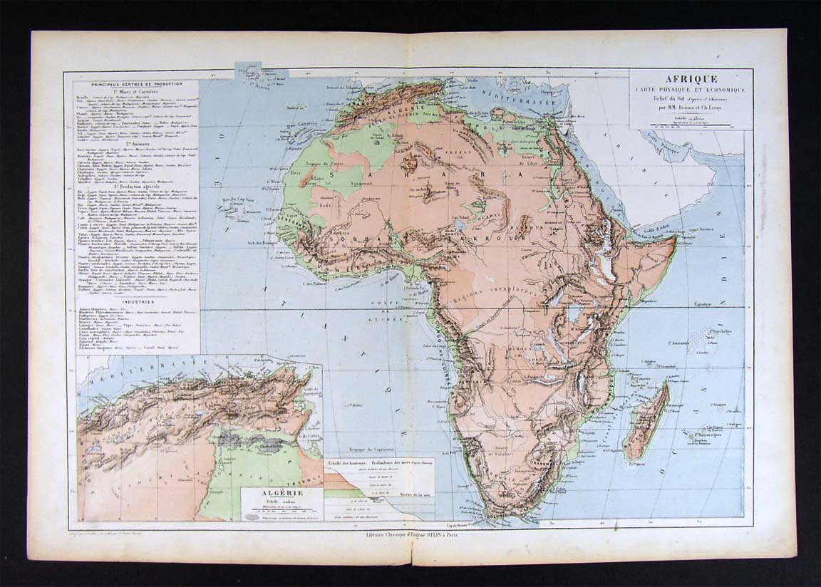 Description: It is an authentic antique map approximately 130 years old with cerographic color and a centerfold as issued. It is from the Atlas Universel et Classigue de Geographie by MM. Drioux and Ch. Leroy, published in Paris in 1882, a facsimile copy of the title page is included for authenticity.
