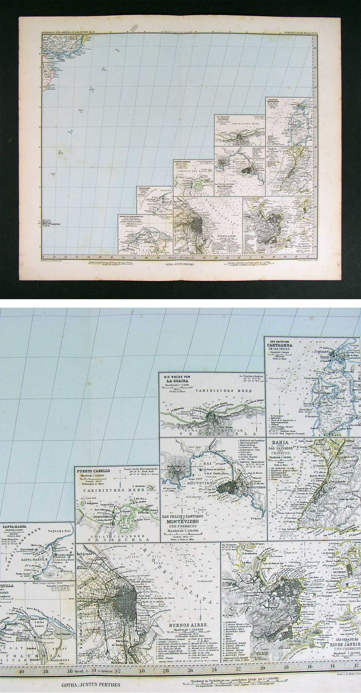 Description: It is an original antique map approximately 130 years old with original hand coloring and a centerfold as issued. It is from the 1882 edition of Stieler's Hand Atlas, published in Gotha by Justus Perthes. The publisher and date are shown on the map in the bottom margin and the name of the atlas is in the upper right corner. The map is not mounted nor matted, being sold as a single sheet as seen in the first pic. The Stieler maps are some of the most detailed of the 19th century in the German tradition of cartography.
